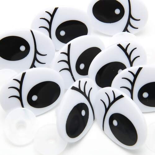 Olho oval com trava de segurança. Ideal para Amigurumis, bonecas, bonecos, bichos de pelúcia, ursos e trabalhos artesanais. Tem como objetivo de proporcionar segurança as suas peças artesanais, pois não permite que as crianças possam removê-las com facilidade.
