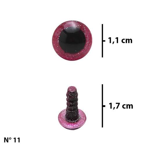 Descrição Olho para Amigurumi Redondo com Glitter nº 11 Rosa com 20 Unidades