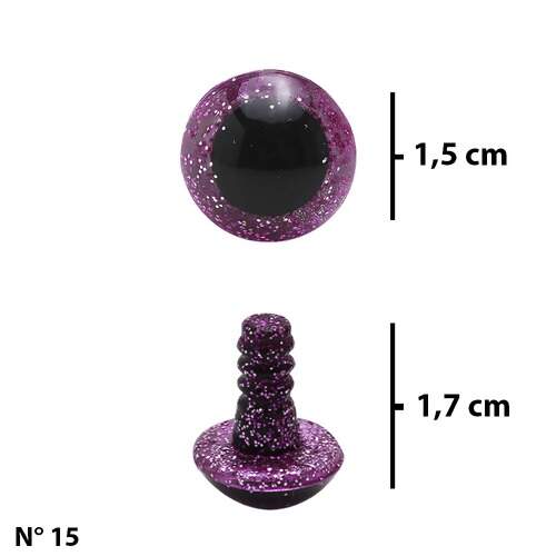 Descrição Olho para Amigurumi Redondo com Glitter nº 15 Lilás com 20 Unidades