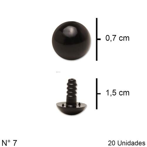 Descrição Olho para Amigurumi Redondo nº 07 Preto c/20 Unidades