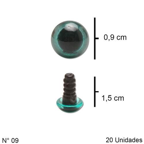 Olho para Amigurumi Redondo nº 09 Verde c/20 Unidades