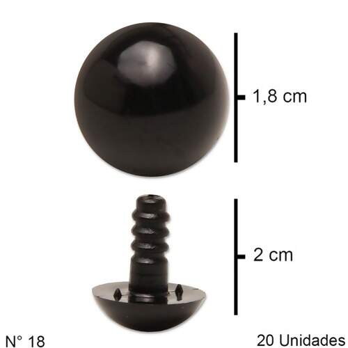 Descrição Olho para Amigurumi Redondo nº 18 Preto c/20 Unidades