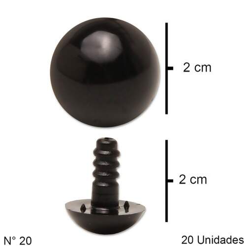 Descrição Olho para Amigurumi Redondo nº 20 Preto c/20 Unidades