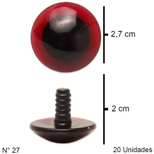 Olho redondo com pino de segurança. Ideal para Amigurumis, bonecas, bonecos, bichos de pelúcia, ursos e trabalhos artesanais. Tem como objetivo de proporcionar segurança as suas peças artesanais, pois não permite que as crianças possam removê-las com facilidade.