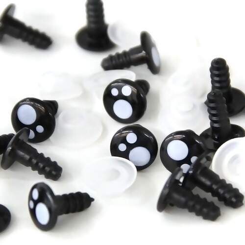 Olho redondo com trava de segurança. Ideal para Amigurumis, bonecas, bonecos, bichos de pelúcia, ursos e trabalhos artesanais. Tem como objetivo de proporcionar segurança as suas peças artesanais, pois não permite que as crianças possam removê-las com facilidade.