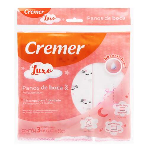 Descrição Pano de Boca Cremer Menina 35x35cm c/3und