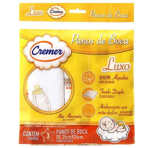 Descrição Pano de Boca Cremer Neutro 35x35cm c/3und