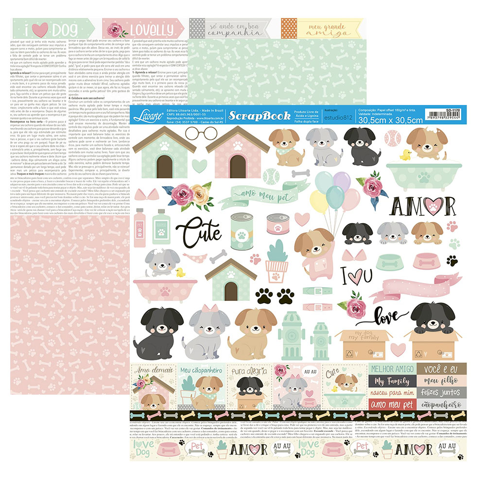 Papel p/Scrapbook Decor Duplo Litoarte Ref.SD 30,5 x 30,5cm Modelo II 1170- Meu Pet Dog