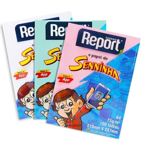 Papel Sulfite A4 Senninha Suzano Report 75g/m2 com 100 Folhas