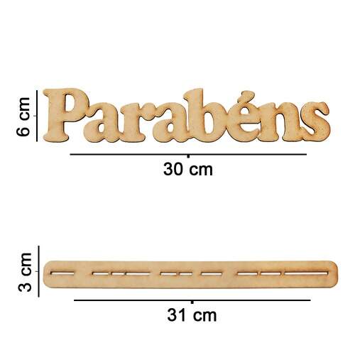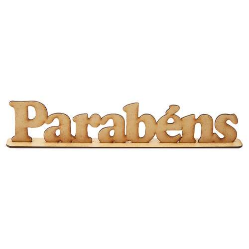 Descrição Parabéns de MDF com Base Ref.11390 30x6cm FL