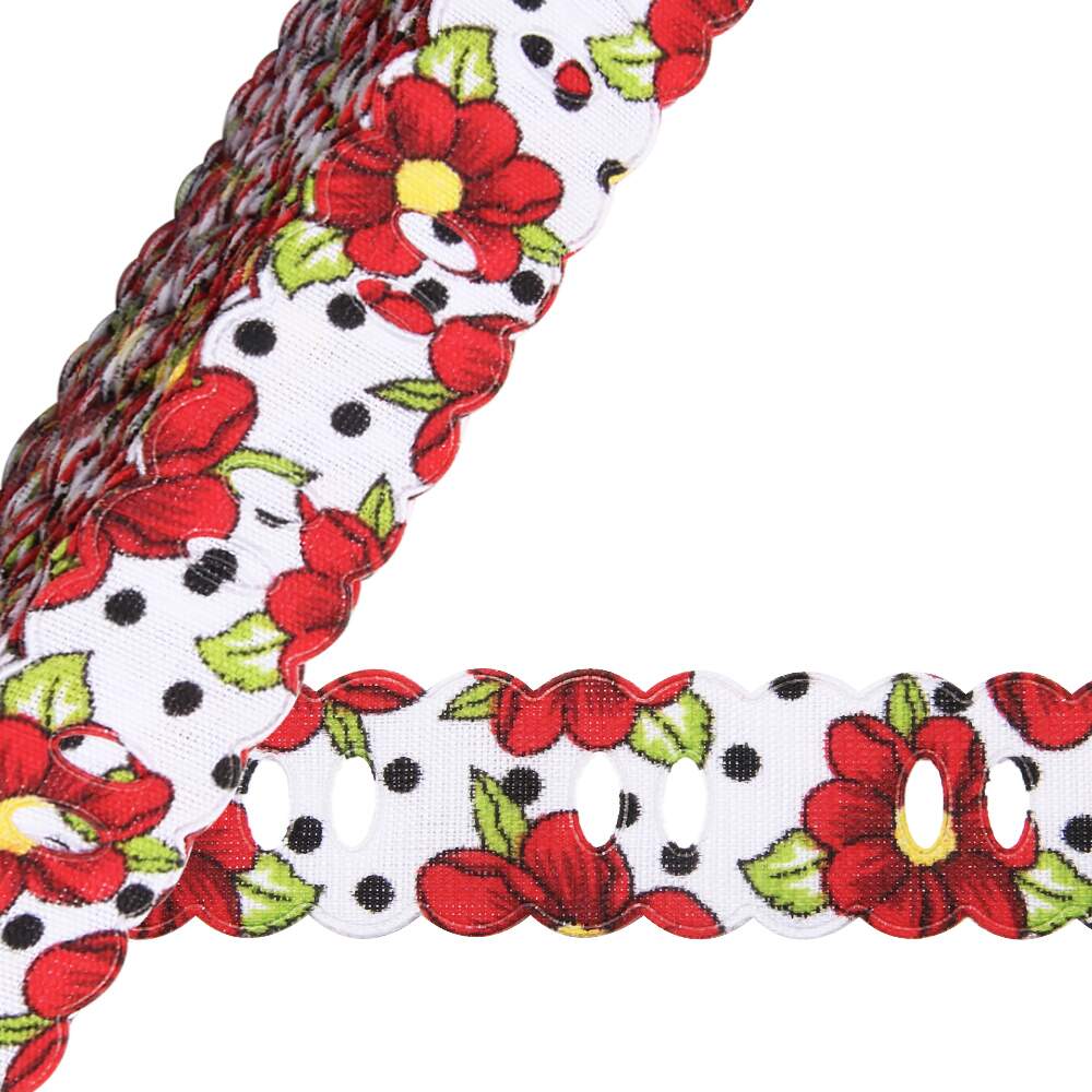 Passa Fita Marilda Ref.92 Estampado 2,3cm com 10mts 0975- Chita Branco/Vermelho