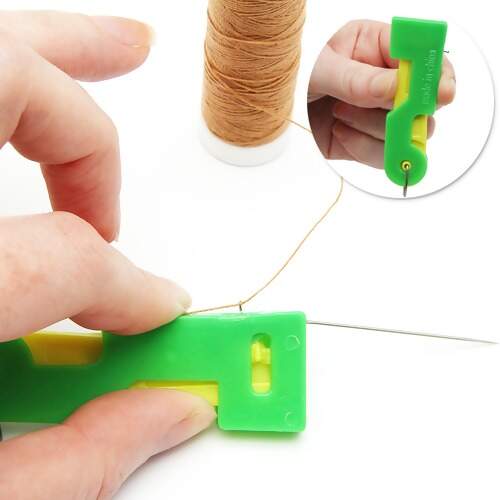 O passador de linha na agulha é perfeito para passar linhas com facilidade.