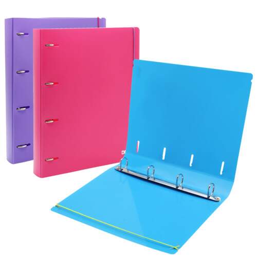 Fechamento com elástico, os fichários com 04 argolas da linha Full Color é ideal para organizar documentos ou trabalhos escolares e universitários.