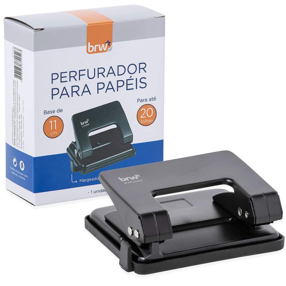 Descrição Perfurador de Papéis BRW de Metal 2 Furos PF2000 para até 20 folhas