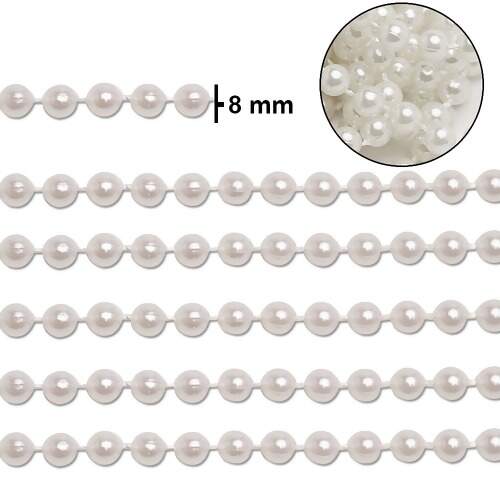 Detalhe Pérola em Metro ABS N.08 08mm Cor Branca c/ 05 Metros
