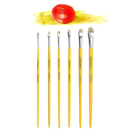 Pincel Chato Aparado e Lixado com Cerda branca importada, o formato chato curto oferece o controle na matização das cores.