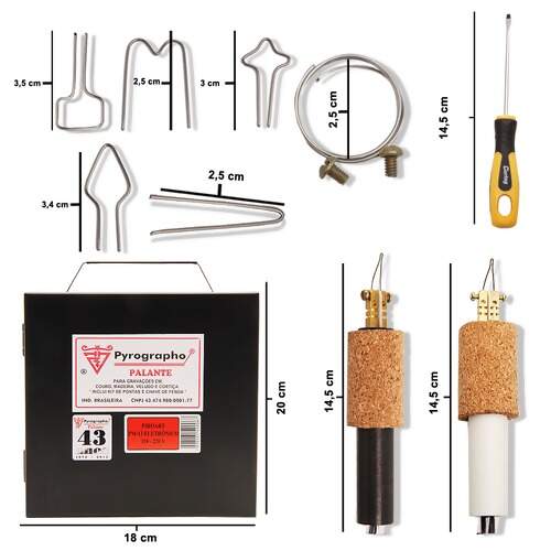 Acessórios: Acompanha 2 Kit de pontas FN1 ( com 5 pontas, 1 rolinho de fio Níquel Cromo 20 e 2 parafusos) ,uma chave de fenda e 2 canetas para rodízio.