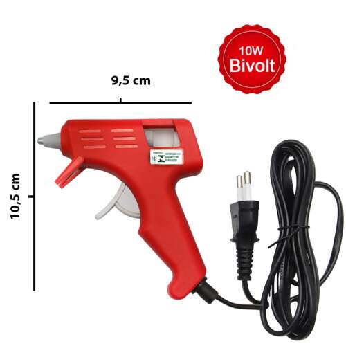 Com uma potência de 10W, esta pistola proporciona aquecimento rápido e eficiente, garantindo uma aplicação suave e uniforme da cola em uma variedade de materiais, como papel, madeira, tecido e plástico. Seja para projetos de scrapbooking, decoração, reparos domésticos ou artesanato em geral. Possui bico protetor.