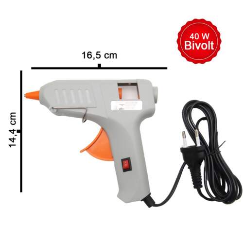 Com uma potência de 40W, esta pistola proporciona aquecimento rápido e eficiente, garantindo uma aplicação suave e uniforme da cola em uma variedade de materiais, como papel, madeira, tecido e plástico. Seja para projetos de scrapbooking, decoração, reparos domésticos ou artesanato em geral. Possui bico protetor e vávula de retenção.