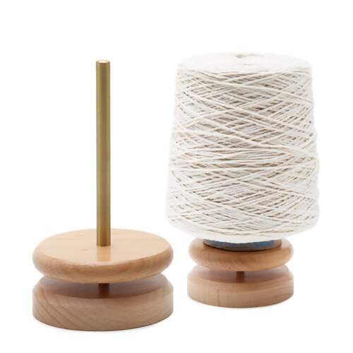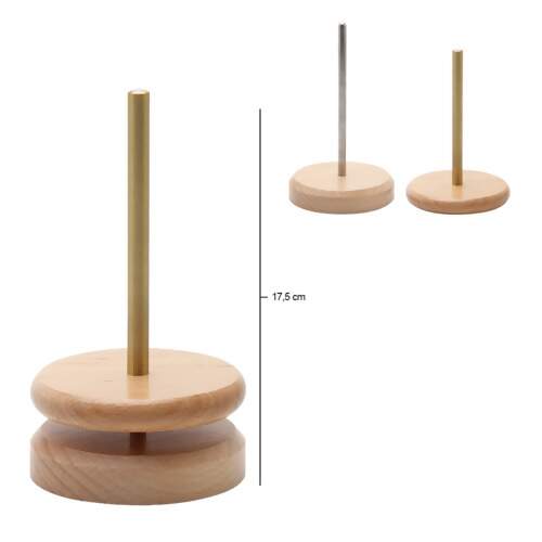 Detalhe Porta Novelo e Enrolador de Fios Base de Madeira Giratória