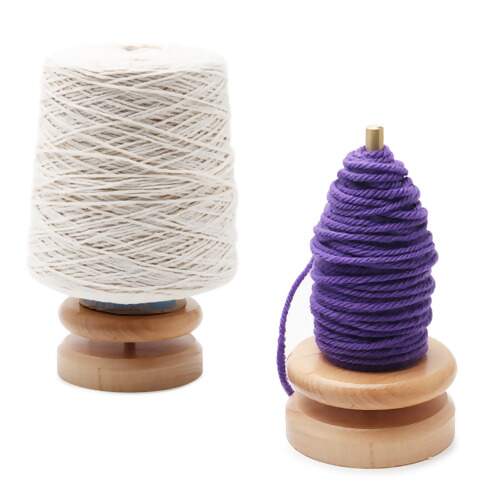 Descrição Porta Novelo e Enrolador de Fios Base de Madeira Giratória