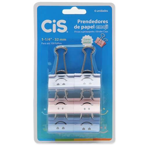 Prendedor de Papel Cis Emoji Tons Pastel 32mm Ref.112032 com 6 Und