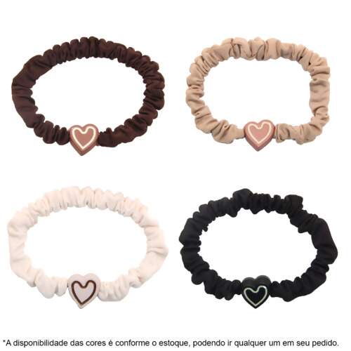 Descrição Prendedor Elástico de Cabelo Coração Sortido