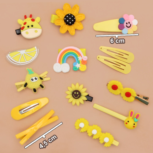 Presilha de Cabelo Infantil com 14 Und para meninas com temas adoráveis, incluindo arco-íris, frutas, flores e personagens animados. Belos acessórios de cabelo, é charmoso e elegante, perfeito para ajudar as meninas a arrumar os cabelos e franjas.