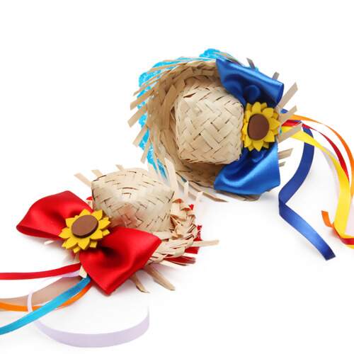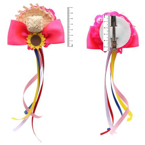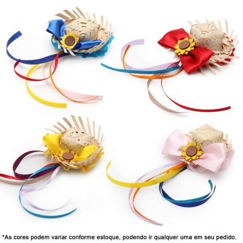 Linda presilha de bico de pato com mini chapéu de palha, com fitas de cetim e detalhes que vão deixar o visual da sua fantasia junina ainda mais alegre e divertida.