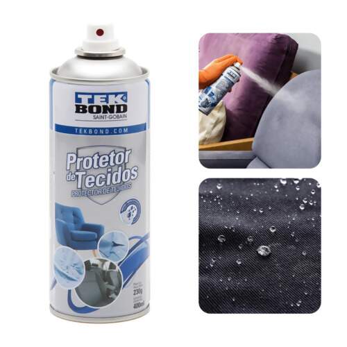 O Protetor de Tecidos Tekbond é perfeito para repelir respingos a bases d' água que podem surgir durante o dia a dia, impedindo que o líquido se transforme em manchas, sem alterar a aparência e a textura do tecido. Pode ser aplicado em vários objetos que estejam suscetíveis a manchas como: Estofados, Mochilas, Tênis de Tecidos, Gravatas, Banco de carros e Bolsas.