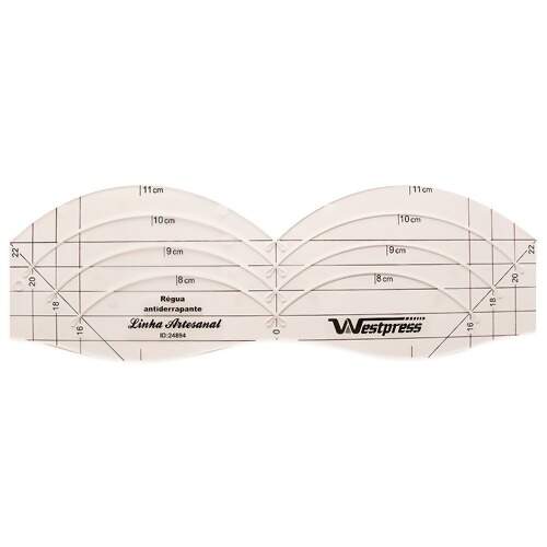 Régua para dresden possui 3 ondas, antiderrapante. Crie suas bordas e molduras exclusivas com muita facilidade e praticidade. Ideal para patchwork.