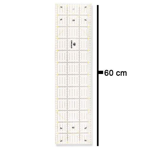 Utilizada para medir tecidos de patchwork, moldes e o que for preciso no seu trabalho. Marcações em centímetros e ângulos que facilitam na hora de cortar os tecidos.
