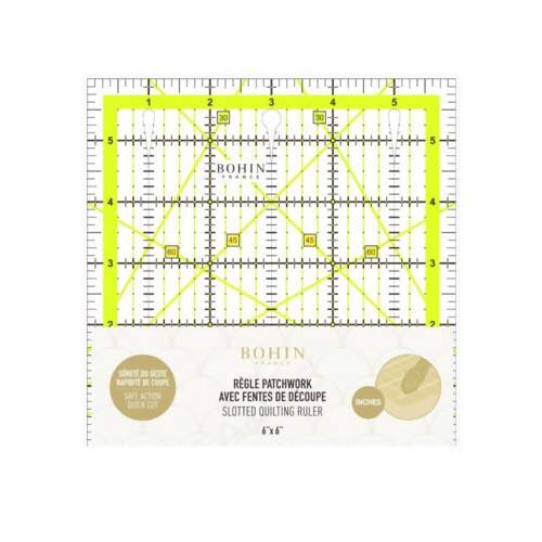 Detalhe Régua para Patchwork Retalhos Bohin R.99001 6x6 Polegadas