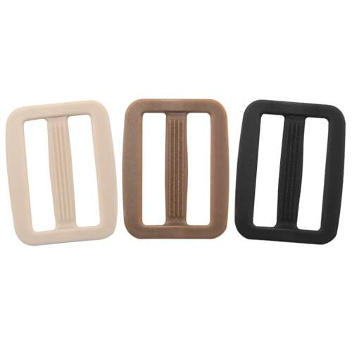 Os reguladores de 25mm são produzidos com plástico e possuem um espaço para passar uma alça de até 25mm (2,5cm).