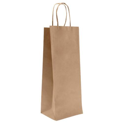 Sacola para garrafa de papel kraft liso pardo. Ideal para embalagem e presente.