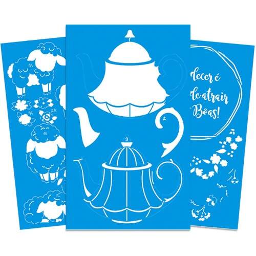 Produto para decoração e pintura artesanal, prático e fácil de utilizar. Produzidos em acetato e cortados a laser, são perfeitos para aplicação nas mais variadas superfícies, planas ou curvas, tais como: tecido, madeira, plástico, vidro, parede, papel, velas artesanais etc.