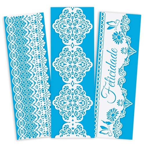 Produto para decoração e pintura artesanal, prático e fácil de utilizar. Produzidos em acetato e cortados a laser, são perfeitos para aplicação nas mais variadas superfícies, planas ou curvas, tais como: tecido, madeira, plástico, vidro, parede, papel, velas artesanais etc.