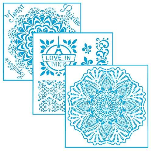 Produto para decoração e pintura artesanal, prático e fácil de utilizar. Produzidos em acetato e cortados a laser, são perfeitos para aplicação nas mais variadas superfícies, planas ou curvas, tais como: tecido, madeira, plástico, vidro, parede, papel, velas artesanais etc.