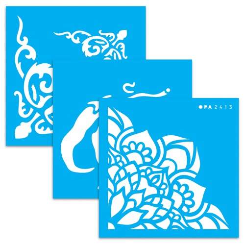 Produto para decoração e pintura artesanal, prático e fácil de utilizar. Produzidos em acetato e cortados a laser, são perfeitos para aplicação nas mais variadas superfícies, planas ou curvas, tais como: tecido, madeira, plástico, vidro, parede, papel, velas artesanais etc.