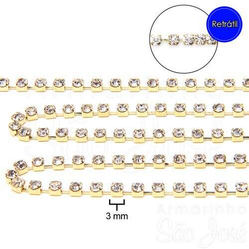 Strass Original 3mm Asfor Cristal PP24-888 - Pacote c/ 1 metro