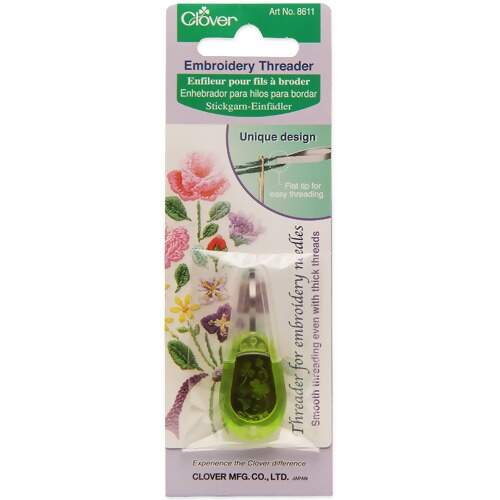 Nossa Threader de bordar tem uma 'ponta plana' que lhe dá rosqueamento suave quando usado com linhas grossas. Funciona com qualquer tipo de linhas, fios e agulhas de bordar.