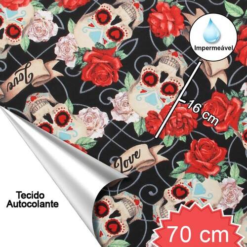 Descrição Tecido Adesivo Impermeável Ref.001 Caveira 45x70cm