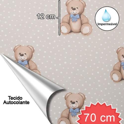Detalhe Tecido Adesivo Impermeável Teddy Azul 45x70cm