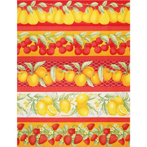 Descrição Tecido Patchwork Circulo 430218 2642 Barrado Frutas 0,58x1,46mts