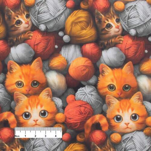 Detalhe Tecido Patchwork Digital Circulo 479683 2850 Gatos com Novelos 0,48x1,46mts