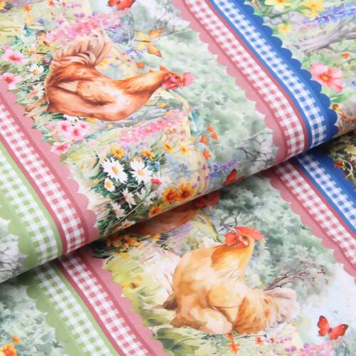Tecido Patchwork Digital Eva e Eva Coleção Galinhas e Flores