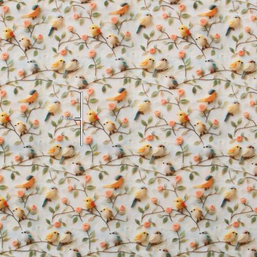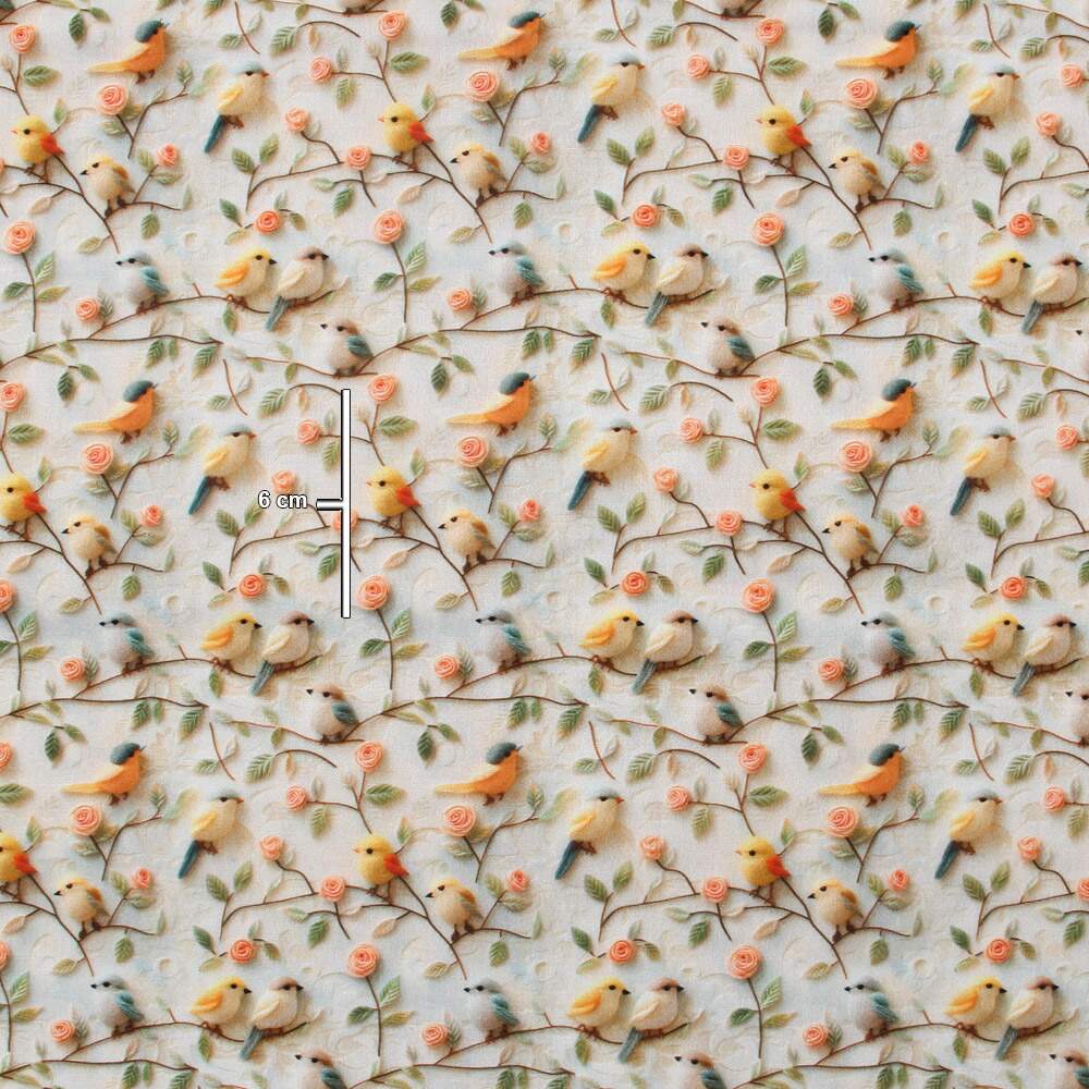 Tecido Patchwork Digital Fabricart Coleção Natureza Encantada 0,48x1,50mts D1031- Passarinho Creme