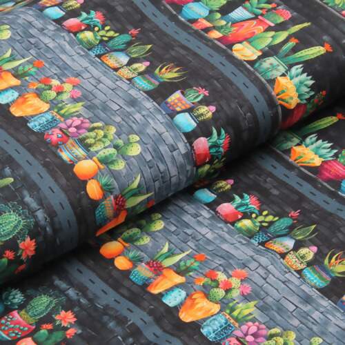 Descrição Tecido Patchwork Digital Fabricart D1000 Barrado Suculentas 0,58x1,50mts