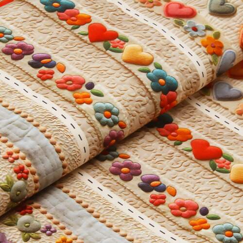 Detalhe Tecido Patchwork Digital Fabricart D955 Barrado Corações Feltro 0,58x1,50mts