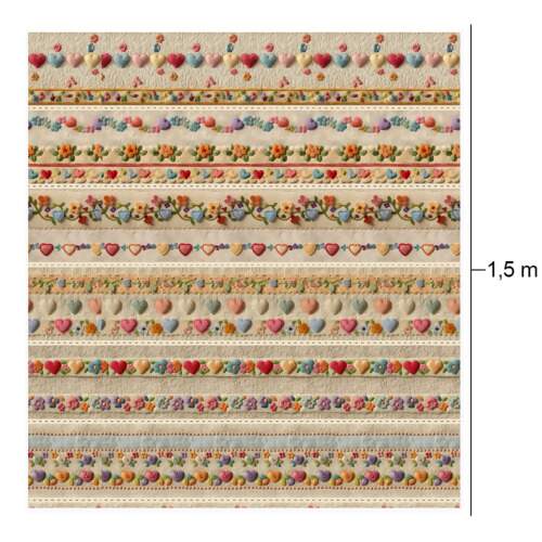 Descrição Tecido Patchwork Digital Fabricart D955 Barrado Corações Feltro 0,58x1,50mts